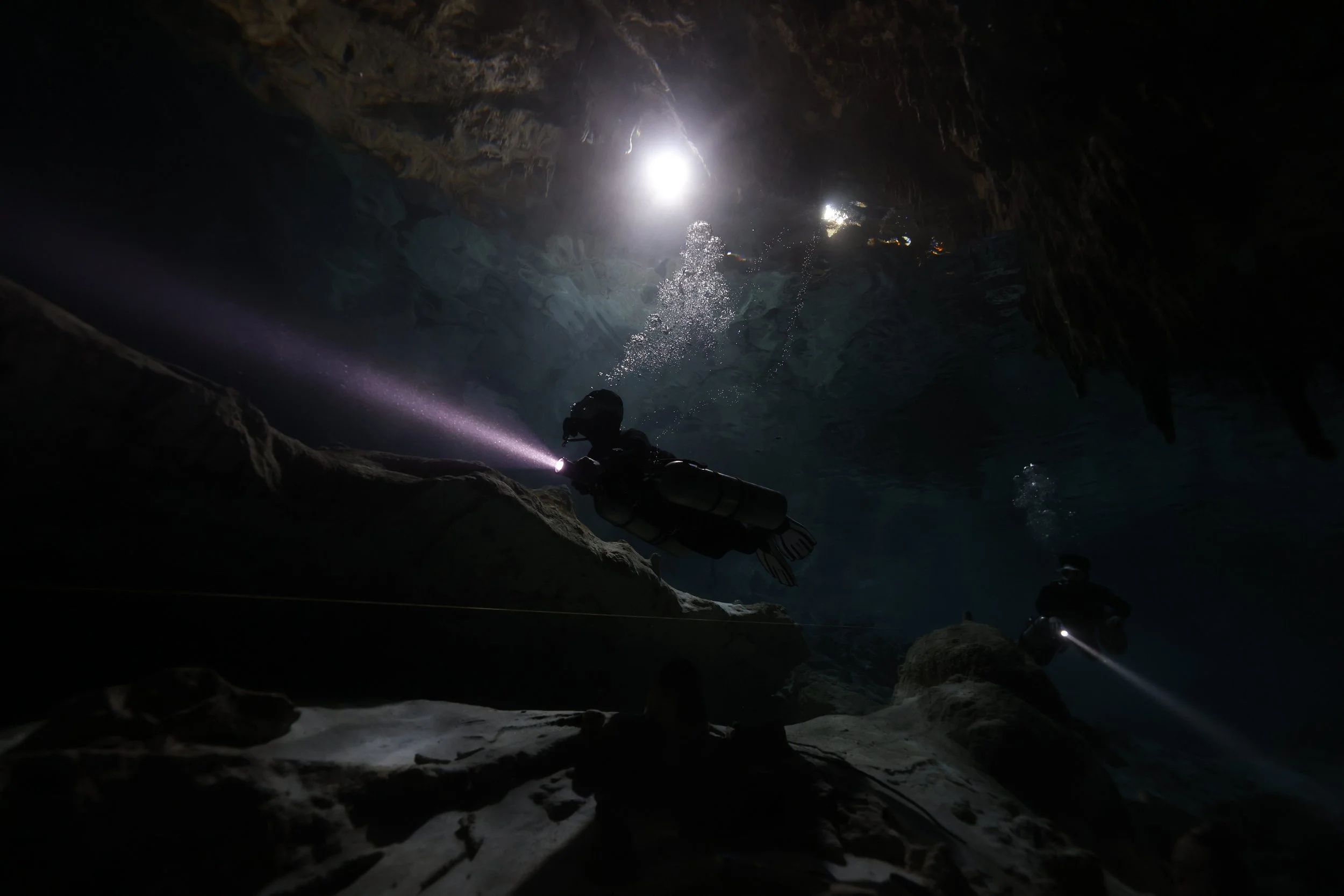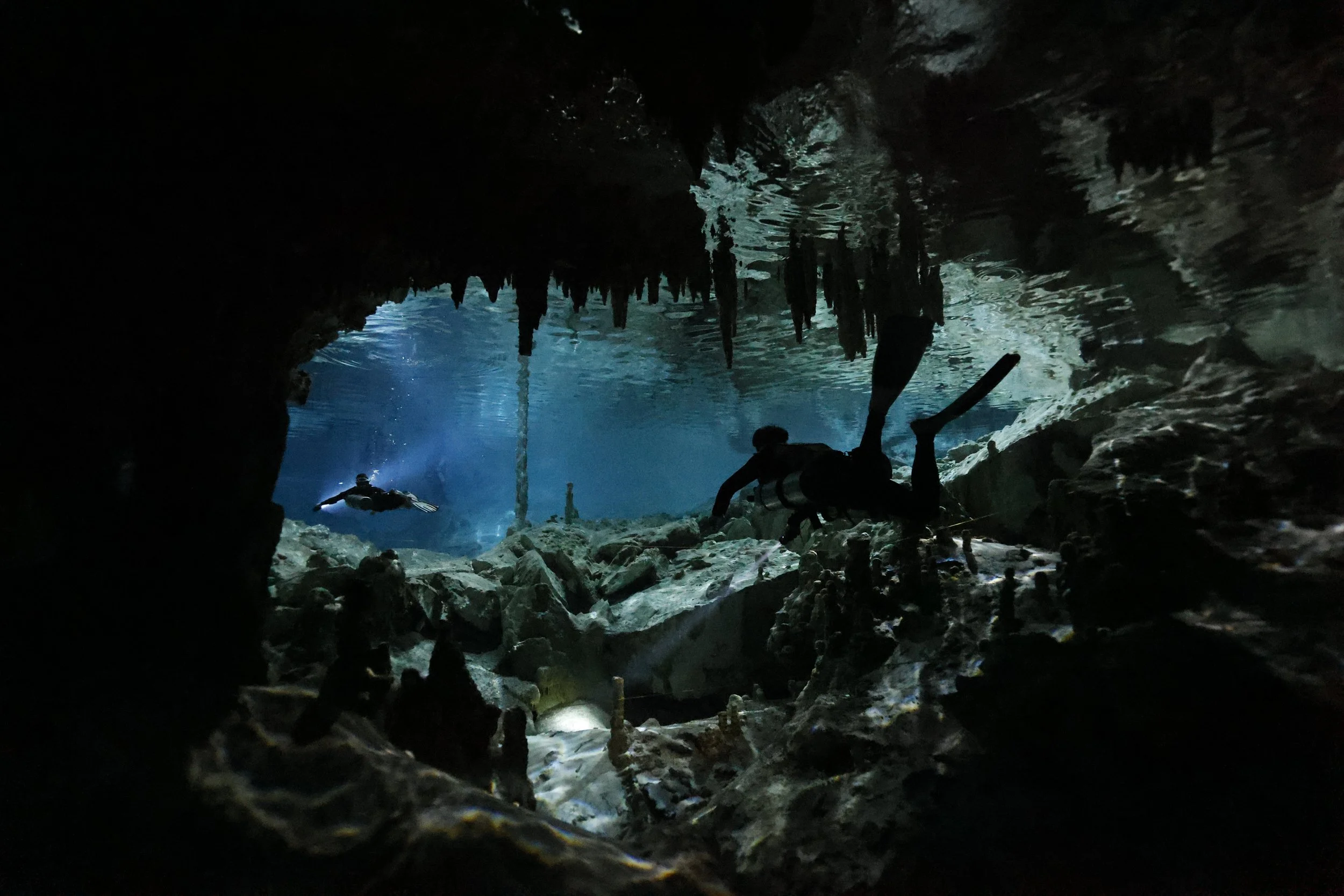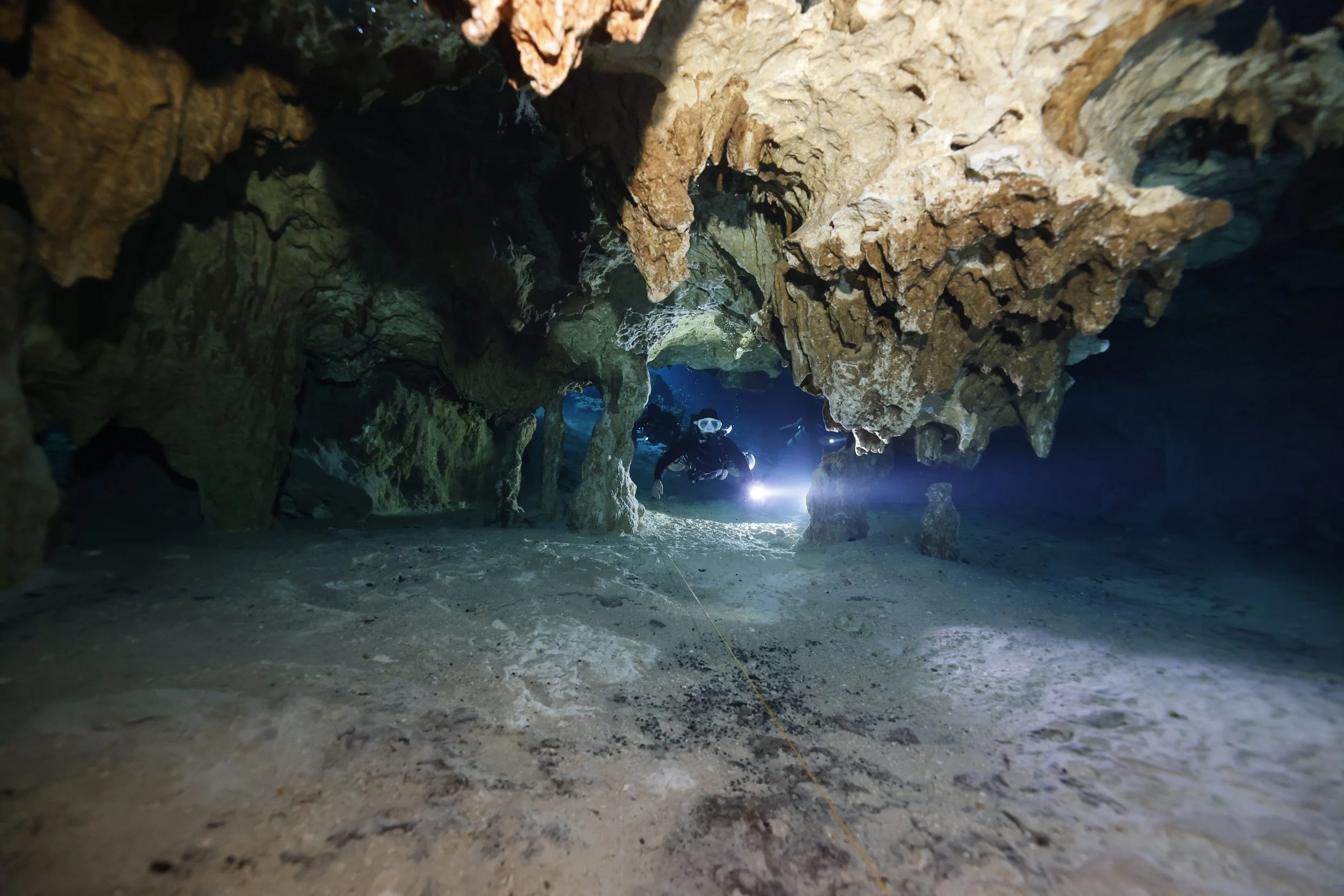 視野が広いこと、最低限の浮力コントロールや細かいフィンワークも常に求められるダイビングにはなりますが、その分、いつの間にか洞窟の世界へのめり込んでしまっている感覚こそ、このレベルのセノーテのみどころ。