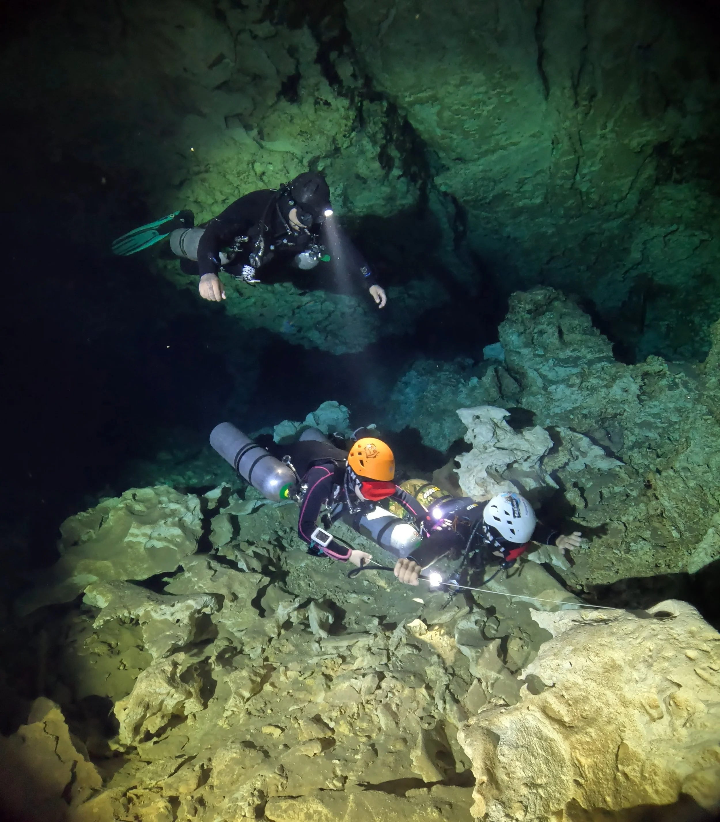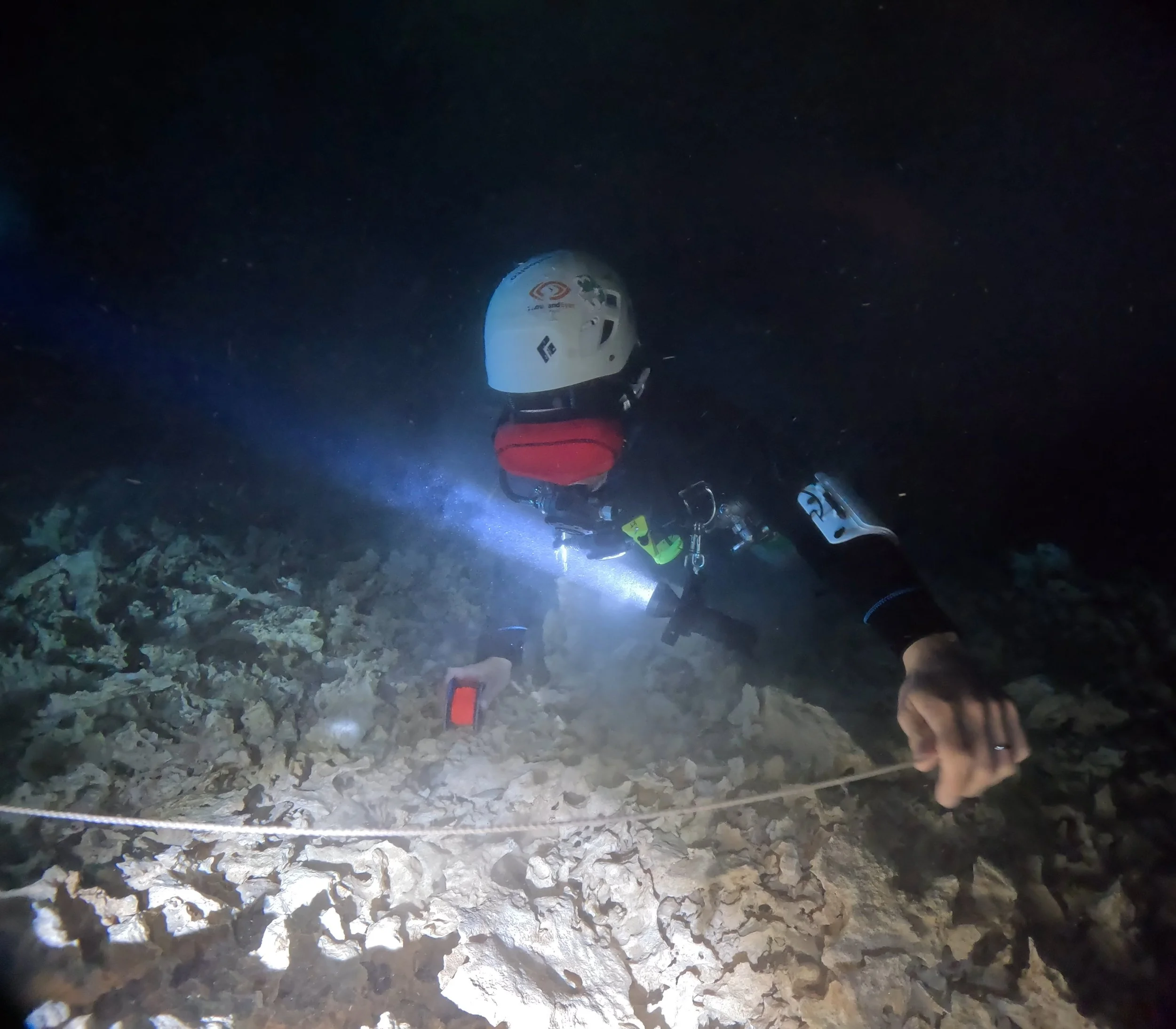 陸上で十分に手順を確認し、水中のケーブ内で実践、の繰り返し。