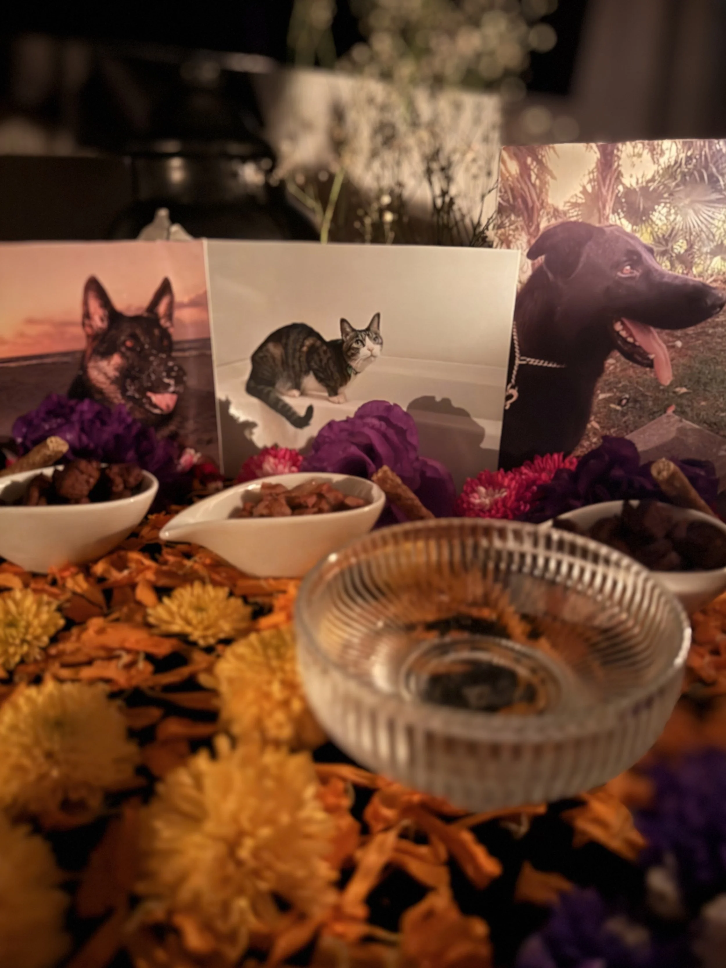 日本のお盆と同じように、一週間ほど続くこのイベント。中には人だけでなく、かつて家族だった動物たちが帰ってくると考えられている日もあります。実は今年から、実家で暮らしていた猫も我が家の祭壇に仲間入り。メキシコにチュールはないけれど、夢に出てきてくれたので本当に会いにきてくれたのかもと思っています。