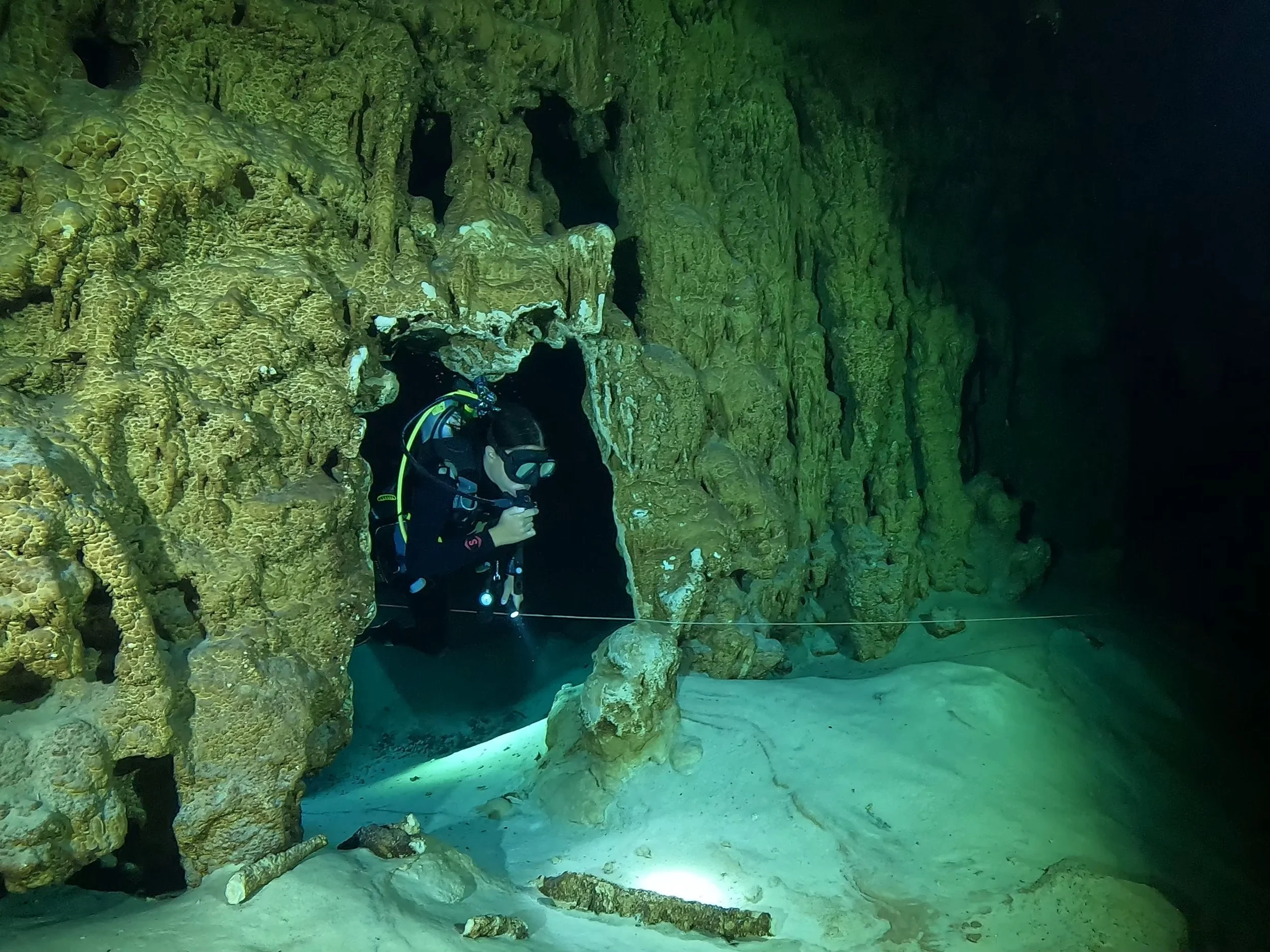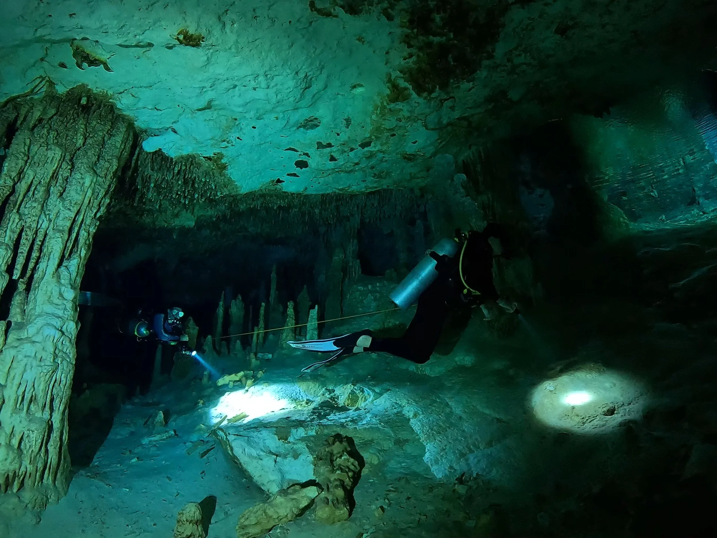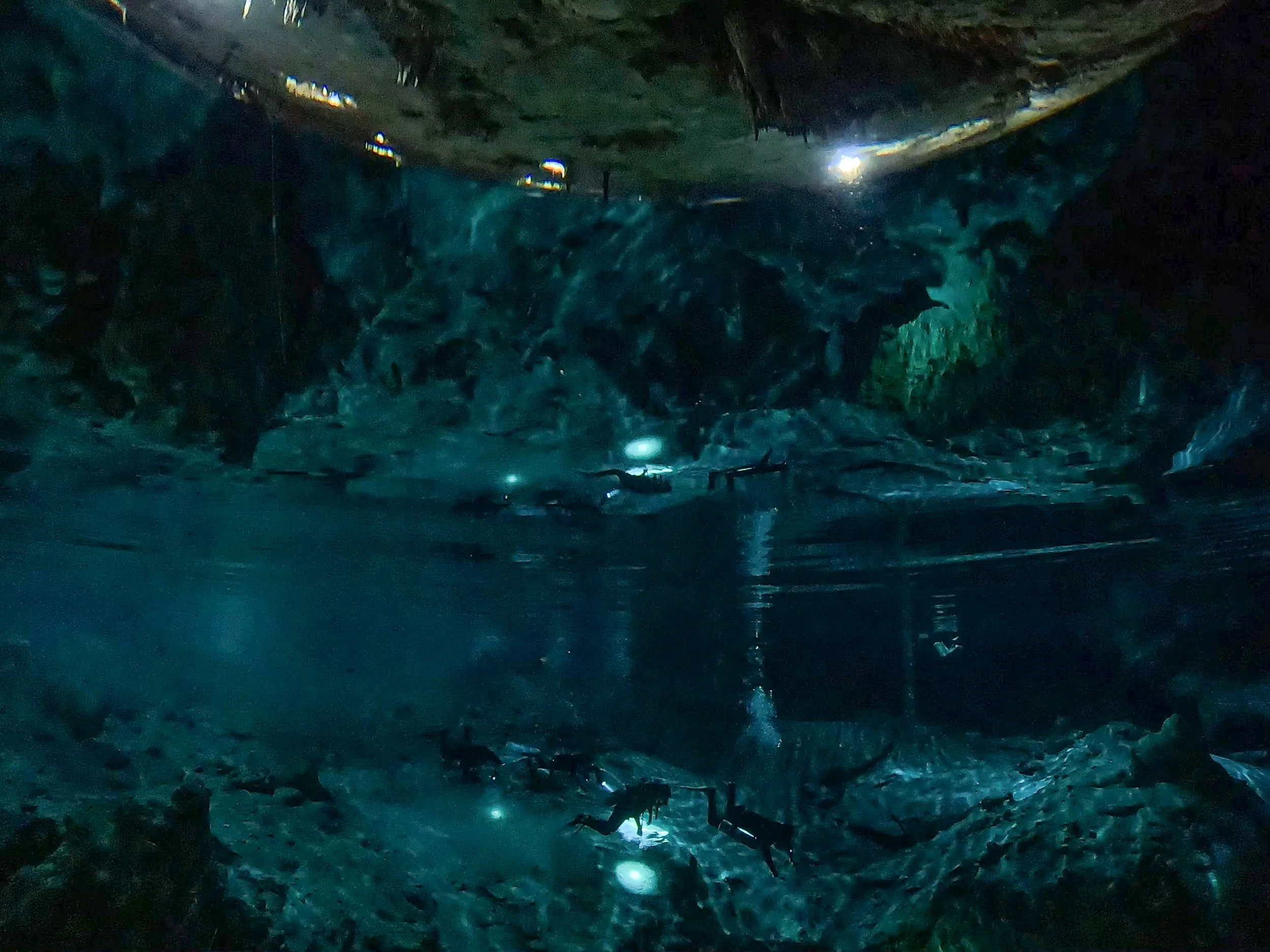 実は、体調が優れずダイビングを控えていた奥様も生粋のケーブダイバー。となると、その娘さんも、もちろんケーブダイビングに興味津々です。ティーンエイジャーの女の子。てっきり映えるきらきら系の、水中を照らす太陽光がきれいなセノーテに惹かれるのかなあと思いましたが。流石はケーブダイバーの娘。