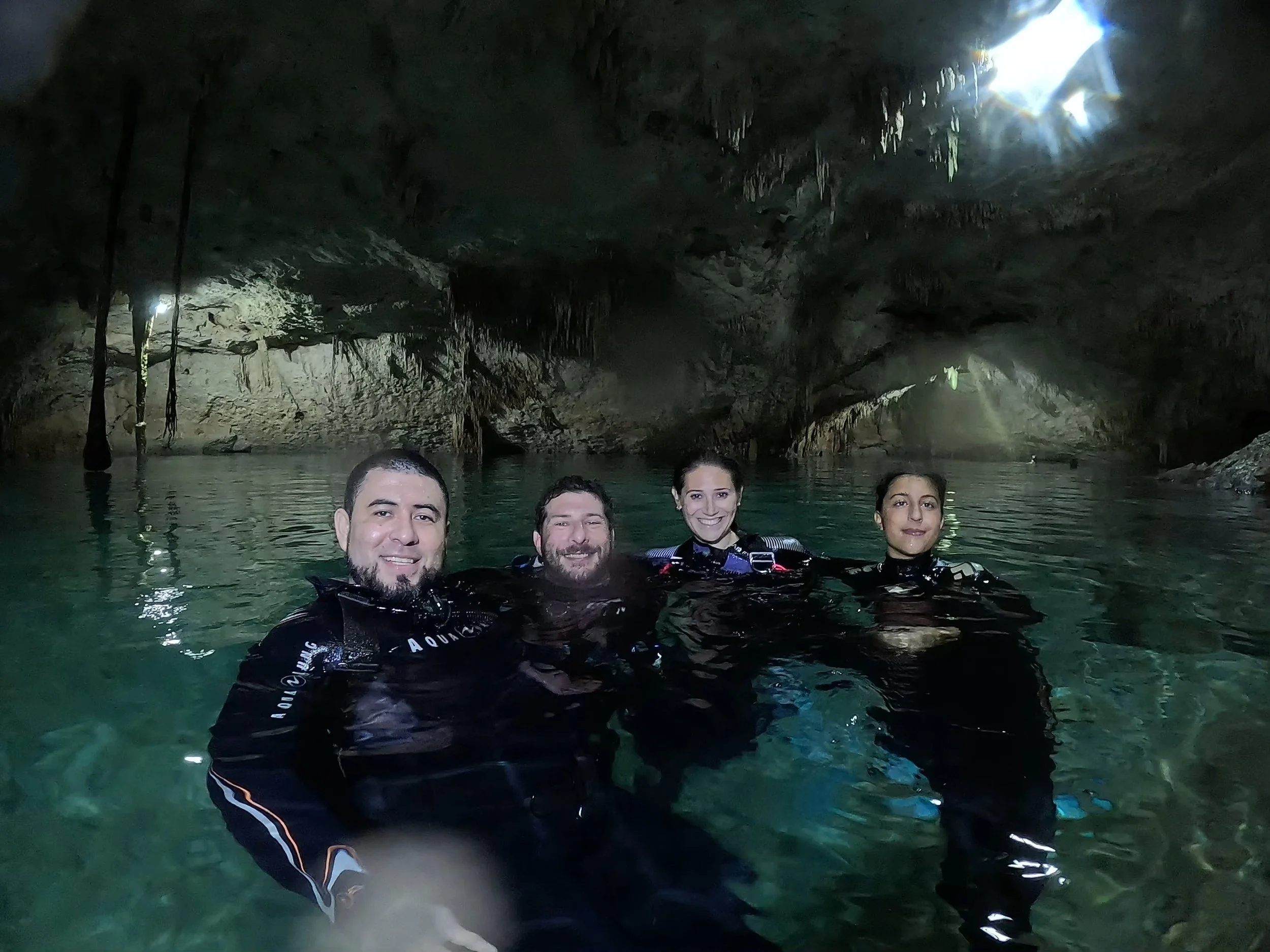 こんにちは、マヤンアンダーワールドのみきです。2日間のケーブダイビングを楽しまれたゲスト様の最終日は、奥様娘さんとご家族揃ってカバーンダイビングへ。