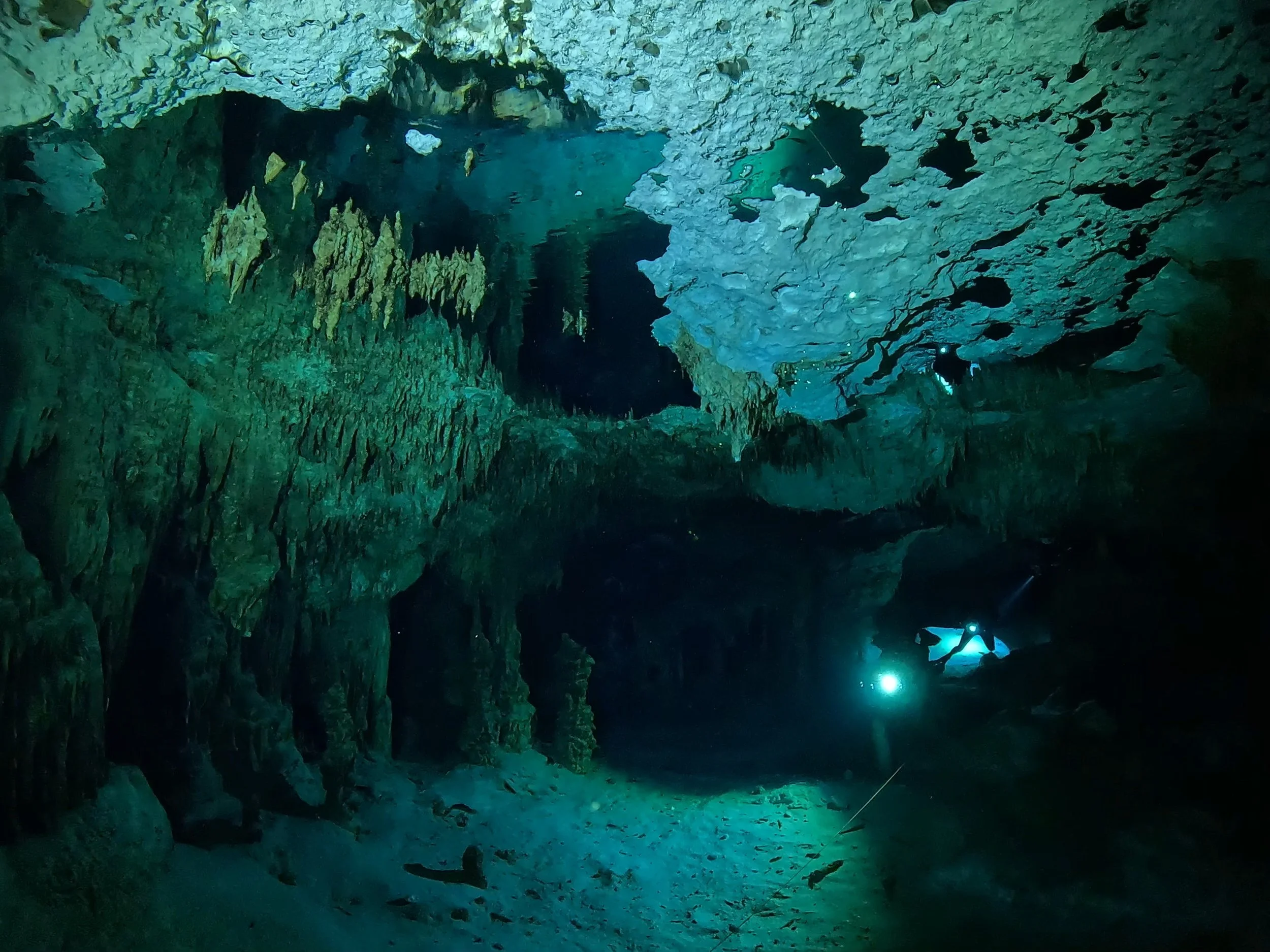 さて、ここまでがセノーテタクビルムの写真。セノーテダイビングの経験がある方は、このセノーテが他と異なる特徴がお分かりでしょうか?