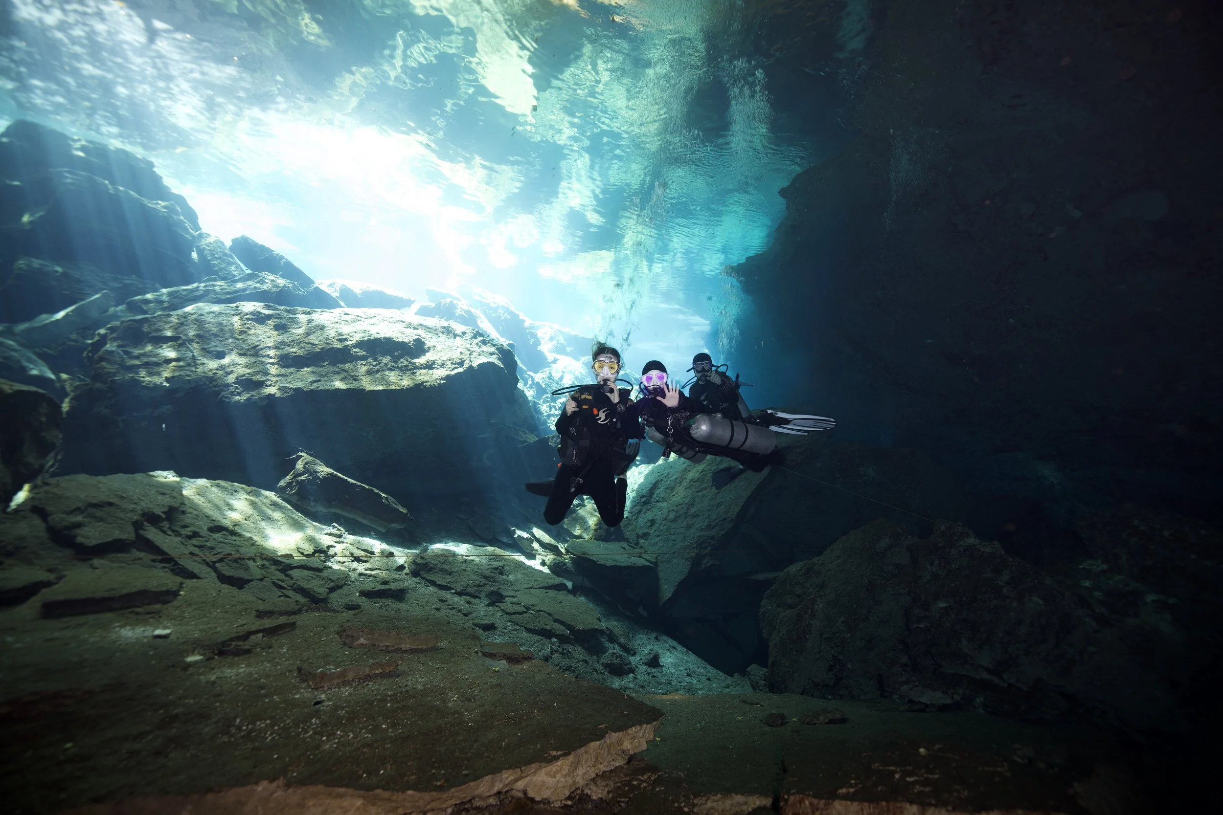 セノーテダイビングは、その名の通り頭上閉塞という特別な環境で行うダイビング。