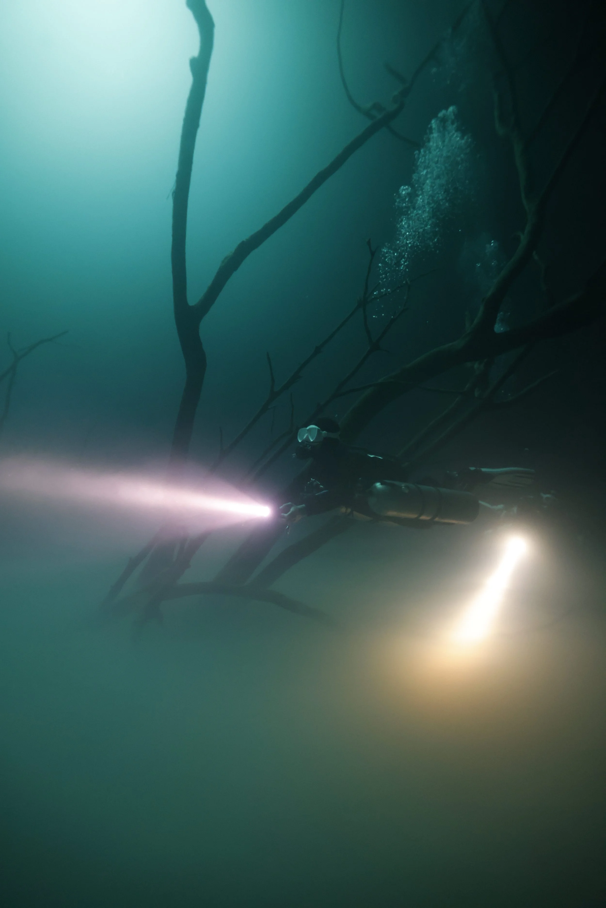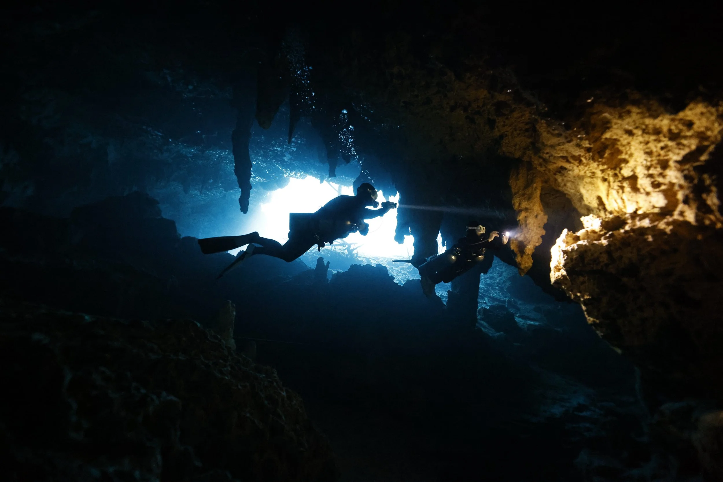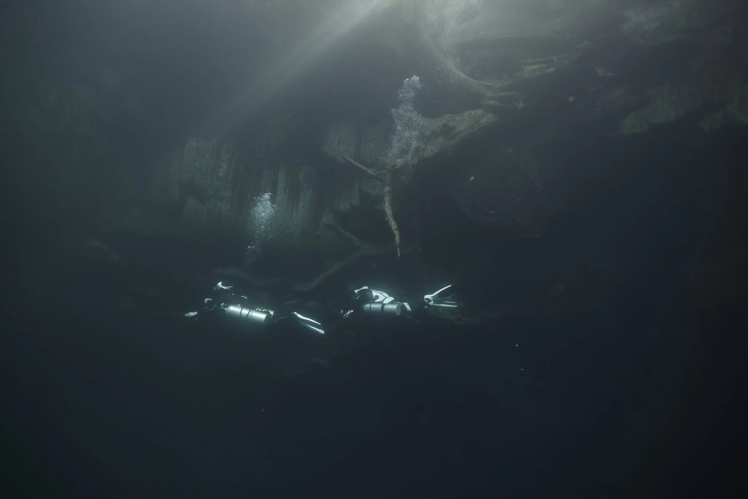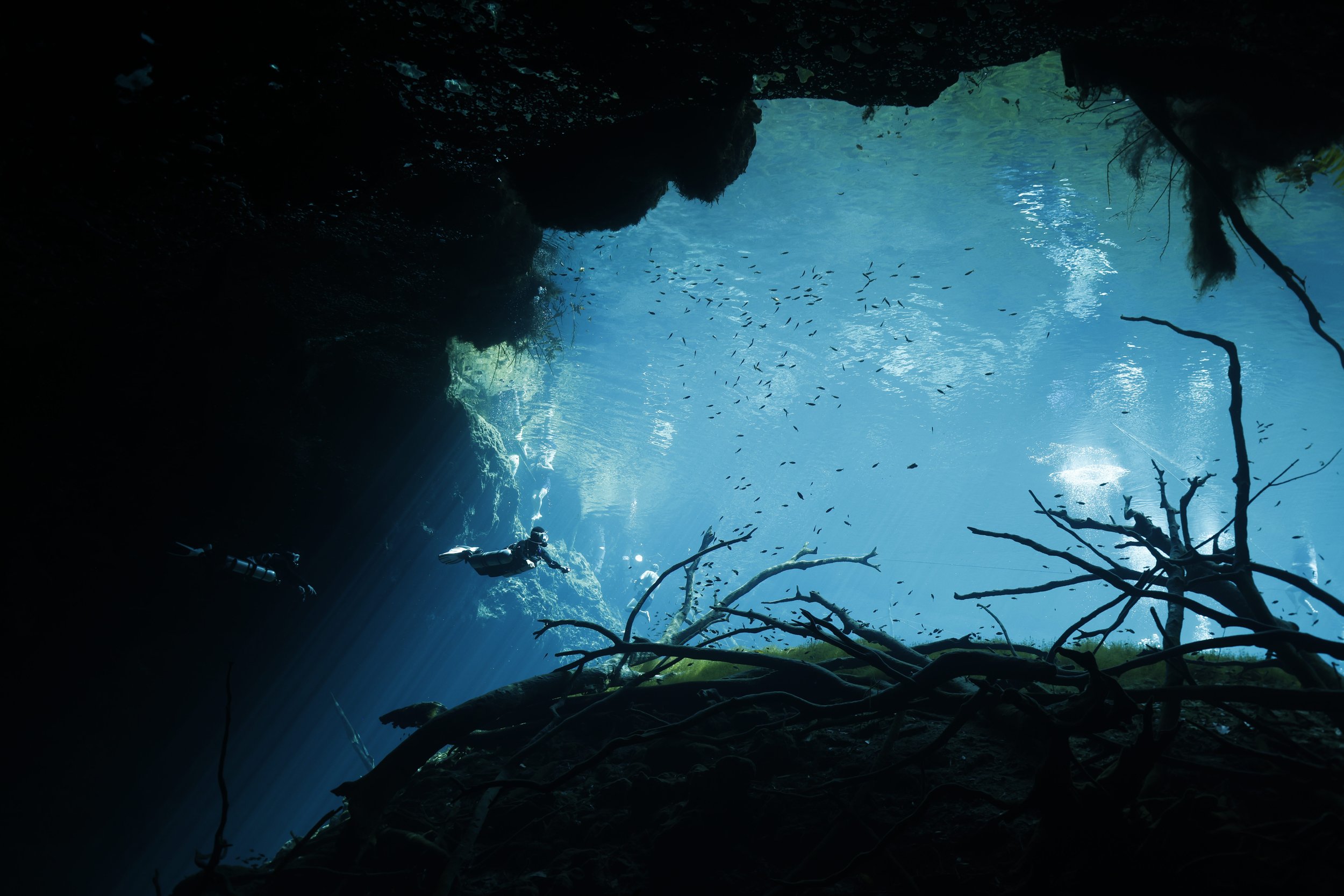 広い竪穴を垂直に潜降し、硫化水素の層が広がる28m前後に滞在、あとはゆっくり浮上しダイビングを終了するというシンプルな流れです。